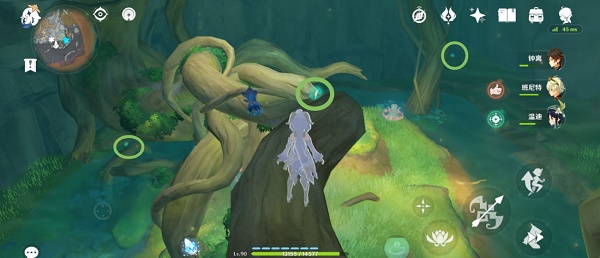3、我们来到树上用元素视野观察,会发现有三片小树叶,都摘取后我们激活下面的元素柱子,激活后开启中间的精致宝箱,可以隐藏成就【生命之谷的居民】,和一个隐藏道具【干枯的种子】,从派蒙的嘴里可以得知这个道具有关须弥。