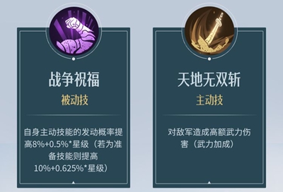 自身主动技能的发动概率提高8%+0.5%*星级(若为准备技能则提高10%+0.6259%*星级)