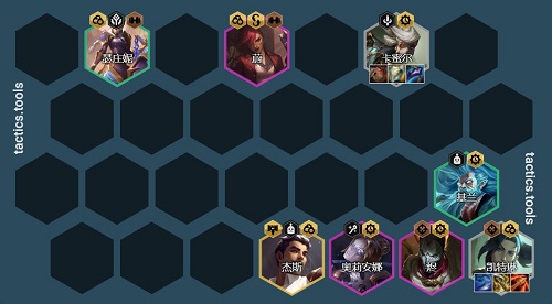 13.后期阵容:5阶段提速拉8人口找到杰斯开出4执法羁绊,目前执法羁绊还没有被改动,4执法能够控制对面主C还是非常关键的。后期单纯靠一个执法女警是完全C不动的,就必须要杰斯来补充伤害,根据杰斯的装备决定后期杰斯的站位,如果是肉装则直接站前排,如果是输出装则后排。后续9人口去找2星杰斯,如果有狙神转,则直接给杰斯,9人口补充泽丽开出4狙神;如果有精密转,尽量可能上6精密即可。什么转职都没有可以考虑补充塔姆或者希尔科单挂一张5费卡补充阵容强度。