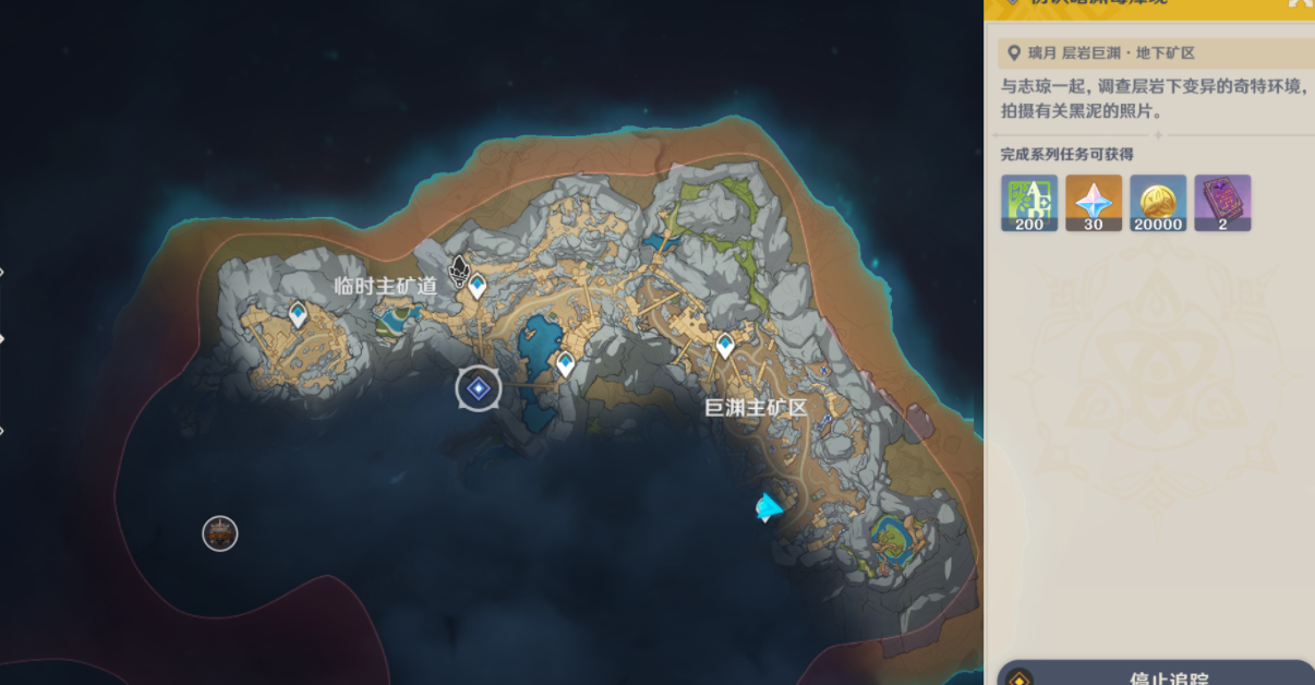 任务触发层岩巨渊地下矿区任务「方入巨渊初探勘」进行至“完成志琼的委托(0/2) "时触发