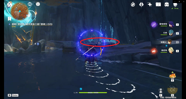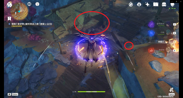 破坏第一处的「磐键」后可以使用跳跃平台(红圈)出去并前往第二处「磐键」方向(根据任务指示)