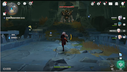 3、然后需要我们前往两处任务引导区域,敲墙两侧遗迹中的钟。