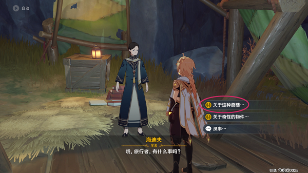 在背包中有「星蕈」时,我们到营地找学者海迪夫对话,选择选项「关于这种蘑菇…」