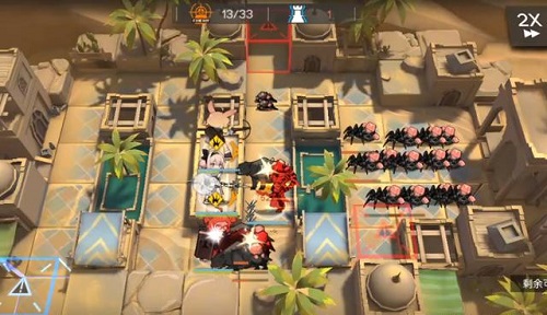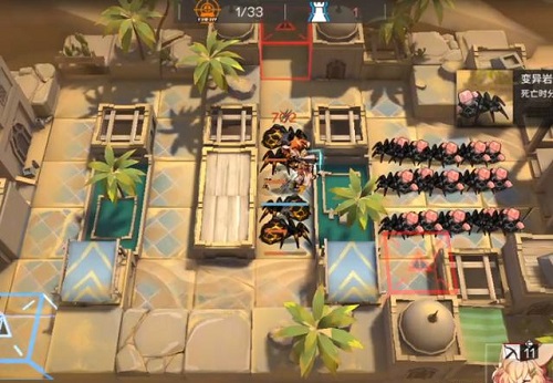 3、下路部署米格鲁挡住分裂熊,之后先再次空投槐虎沉默自爆蜘蛛,然后高台部署克天使还有奶妈,冲右侧攻击,即可,这样把中间的这些自爆蜘蛛全部搞定了。