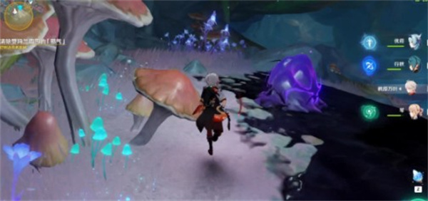 5、再去向赞玛兰汇报,获得任务道具然后沿着水流前往上游寻找邪气的源头,在荧光狭道北部和无名遗迹西南部,对着淤泥涌口使用流明石触媒的技能,出现一个可以交互的光点,在使用刚刚获得的道具就可以净化了;