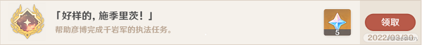 【任务奖励】冒险阅历*250,原石*30,摩拉*30000,大英雄的经验*3