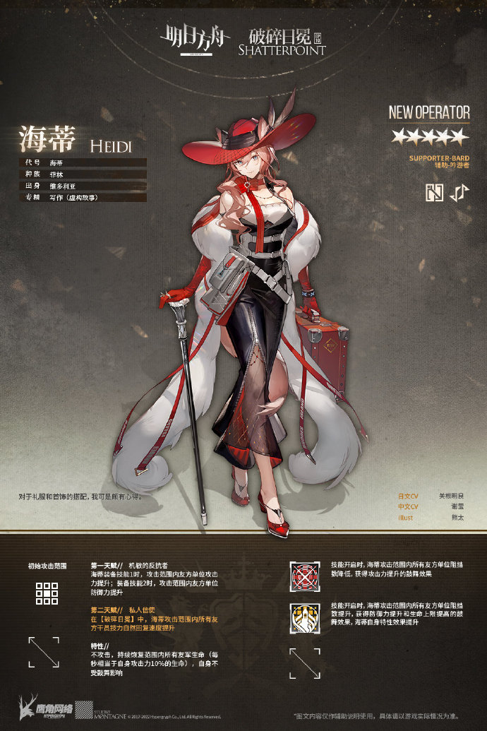 “从很久以前开始,我就想见见罗德岛的各位了。很高兴再认识你一次,博士,叫我海蒂就好。”