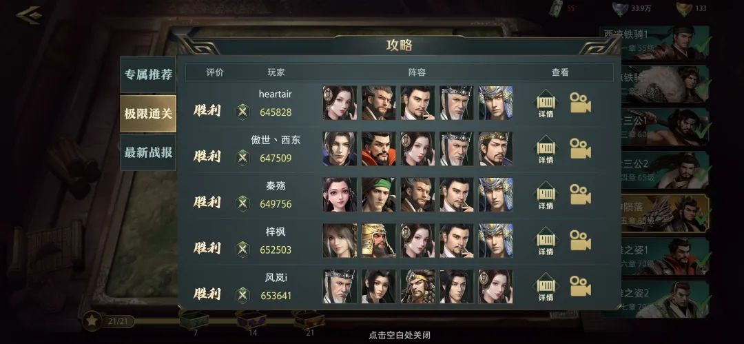 除此以外也可以堆高自身的战法防御能力,黄月英+赵云的组合能够充分利用吕布1v9的特性苟活过关。