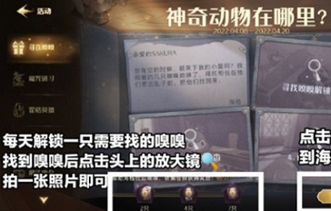 1、方法:在活动界面点击『询问海格』,到小屋后跟海格对话,海格会提供线索(橙色字部分),根据线索找嗅嗅,找到嗅嗅后点击它头上的放大镜,拍一张照片即可完成。