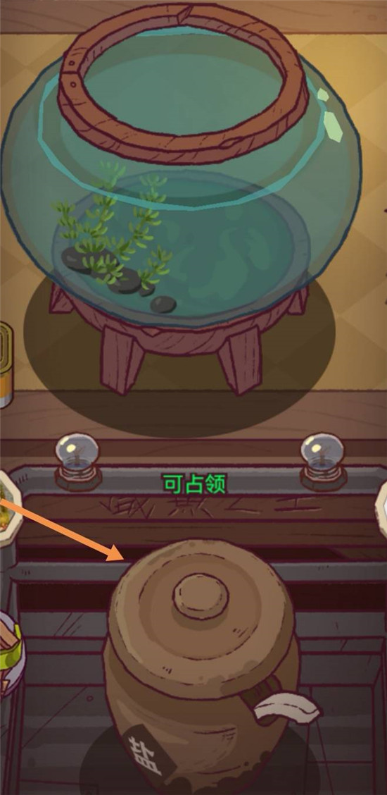 2、在客厅的鱼缸下面玩家可以看见盐罐,如下图。