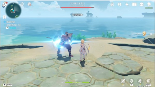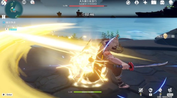 接下来是完美格挡重点,大久保三左卫门蓄力剑技在闪烁蓝光的那一刻我们按格挡技能,即可达成完美格挡啦。