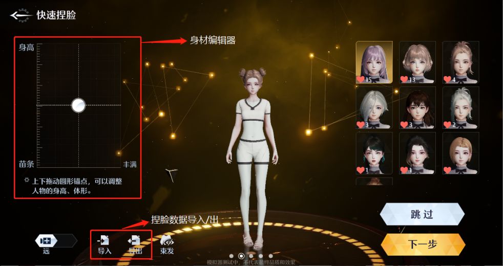 我们进入游戏,选择创建角色,在我们选择好性别后便进入捏脸界面啦(性别可在游戏内更换,即里/表人格切换)