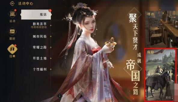 1、在【活动中心】的【经典】→【旅店】页面点击【探险】功能。