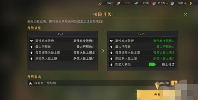 《重返帝国》探险队升级方法