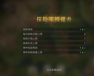 4、满足要求后就能成功升级探险等级了。