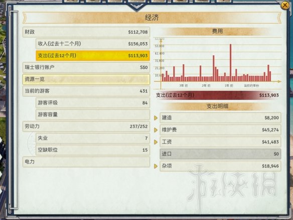 纯游乐场试验了,酒店还是亏本,现在酒店我是真搞不懂肋。但是游乐场码头收入很高,7个游乐场年收入35619....支出才维护3360+工资5010...净收入27249。一个游乐场一年3892收入,出乎意料的高,我彻底惊了。