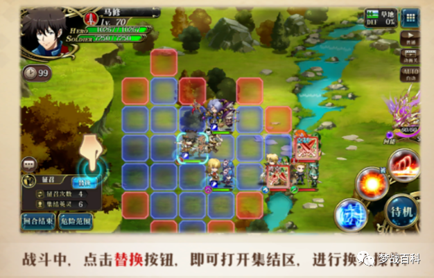 可以看到准备界面里多了个集结区,可以理解为替补队员,随时可以替换场上英雄,这样一个回合里就多了几个人可以帮忙打了,当然是有替换次数限制的。下场休息的英雄可以回血、冷却技能CD、慢慢清DEBUFF。