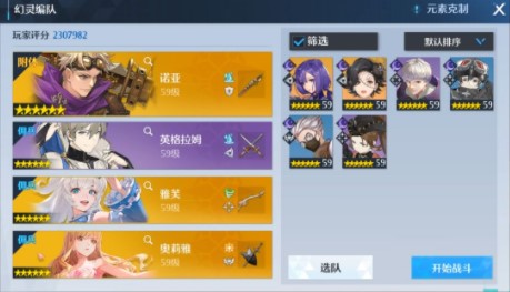 利用非被烈焰元素克制的幻灵上阵,虽然怒涛元素的幻灵只有全队的一半,但是在辅助强化的作用下,水元素的伤害效果依然还是威力不减的。这里用诺亚做前排有一个好处,他本身是传说级的幻灵,基础属性就好,抗伤能力也抢,而且技能中还有免控霸体的效果,在面对一些实在是躲不掉的技能时,直接使用的霸体效果原地勉强扛一下伤害就好了。(手控诺亚的话这个霸体技能的释放会更合时机)