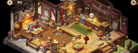 营地玩法主要包括4块内容:菇菇炼药、兔窝厨房、叮当工坊和淑女菜园。