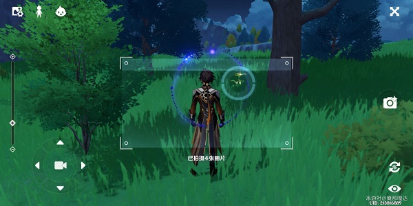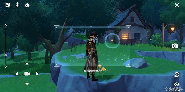 6、到清泉镇传送点4,顺着箭头走,爬上去站在甜甜花旁边拍摄慕风蘑菇即可。