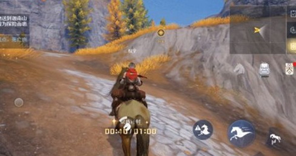 1:首先接到任务之后直接上马加速跑,然后直接骑马一直往目标的点位跑过去,接着我们碰到一个陡峭的山壁,然后我们绕过去,和下马用钩锁的时间是差不多的,没什么区别,加速骑马爬坡就可以看到目标了;