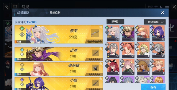 推荐阵容二:诺亚、雅芙、奥莉雅、小影