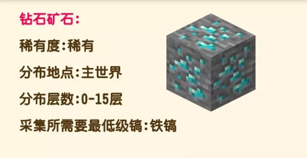 3.最低采集所需要级镐:铁镐,挖掘后直接掉落钻石和大量经验