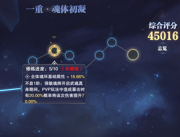 10、其区别的关键在于升到第5和第10进度的时候它们的技能会略有不同,炼体讲求的是辅助和控制系魂师开启武魂真身期间,我方战力最低的3名单位会有减伤效果,而修魂讲求的则是在PVP中强攻敏攻魂师开启武魂真身时,造成暴击时会有一定的概率使此次伤害提高,所以大家可以根据自己不同的需求来选择,个人选择的是PVP的修魂。