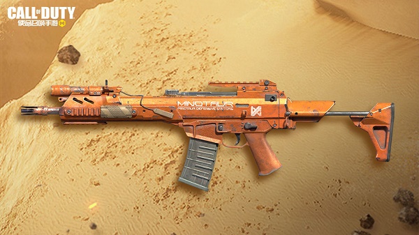 G37-久经沙场采用橘红配色,十分醒目且对敌人具有警示作用。硬朗的造型极具工业感,枪身上印有“MINOTAUR”字样,意为古希腊神话中的“人身牛头怪”。它代表了力量与丰饶,展示出G37-久经沙场不可小觑的实力!