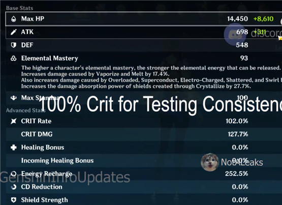 此面板已经可以算是毕业了,别忽视了此测试属性堆到了满暴喔,不知你感觉伤害如何呢?夜兰本身突破增加暴击率,培养难度会相对下降不少。