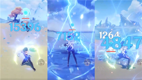 战技伤害15396点,产生4颗水元素微粒。元素爆发技能伤害7152点,玄掷玲珑协同攻击伤害4847*3点。