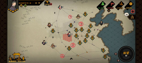 第一年秋天,除了打不到的两国,我们全部派兵平推(兵不够紧急募兵,钱粮不够资源车)