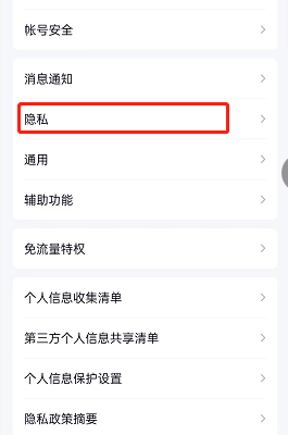 2、选择【隐私】。