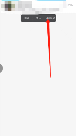 4、长按会话后,点击取消隐藏即可。