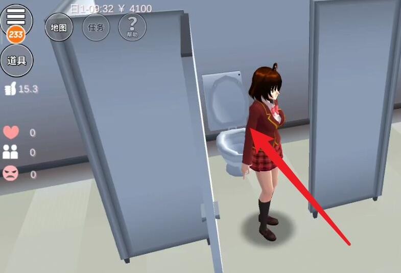 1、在樱花校园模拟器游戏主界面,找到厕所