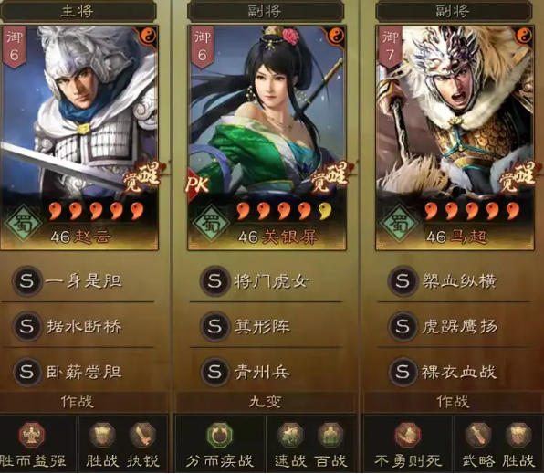 马超:兵锋+奋突,全武力,适当统率,不勇则死+胜战