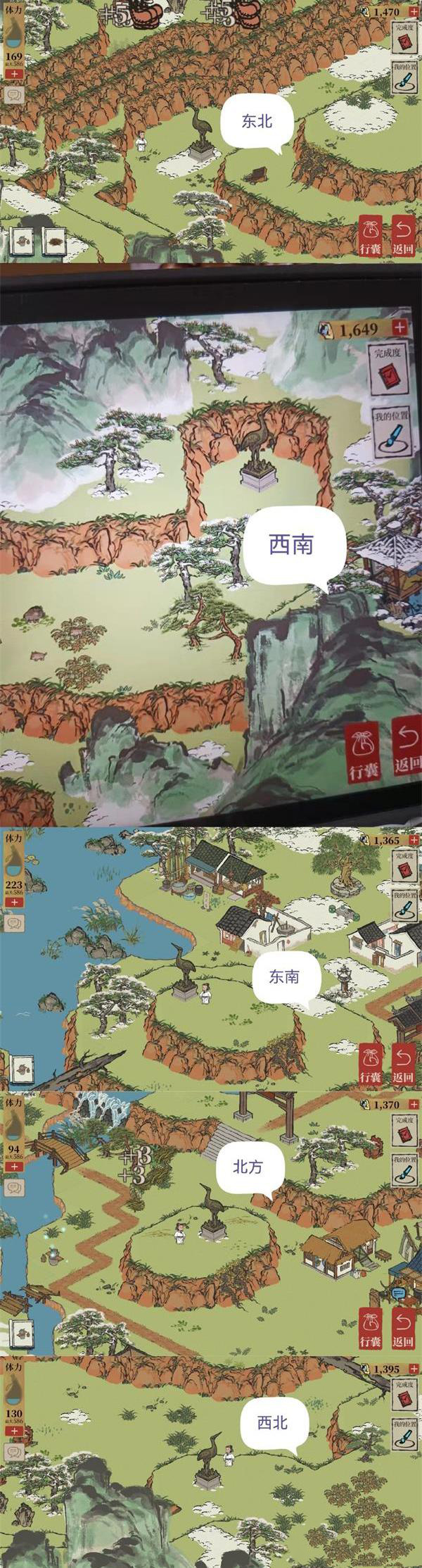 仙鹤转动的方向,注意有五个仙鹤一定要都转完最后才可以去石碑那里领奖励哦!