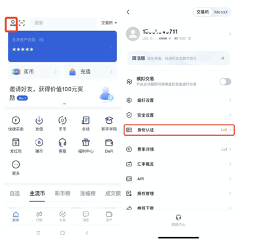 进入官网,点击右上角头像——身份认证,进入身份认证页面完成三级认证。
