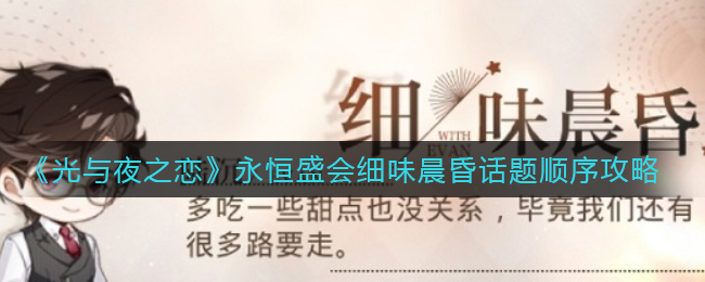 《光与夜之恋》游戏中永恒盛会细味晨昏话题需要玩家们找到正确的顺序才能够获取奖励,很多小伙伴对这方面的内容还不是很了解,为此,小编特地为大家整理了这些内容,一起往下看看吧!