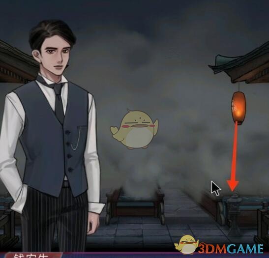 然后把令旗插在药神店屋顶灯笼下面石柱上,雾就散了