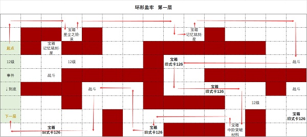 1、环形监牢第一层中有九个宝箱,玩家可以按照上图红色箭头的位置走,可以拿到全部的宝箱。