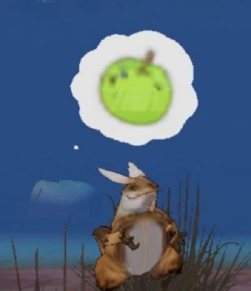 二、这个看似苹果实则是油瓜,背包里有油瓜即可投喂。