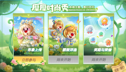 庄园第一期服装比赛正式开启,本期主题为【春日百花】。更新后,小摩尔可前往活动界面上传符合主题的服装搭配,也可以作为评委,评选出最受大家欢迎的装扮,服装评比的数据将生成排行榜,不同区间的排名对应不同的奖励,小摩尔快来比比吧~