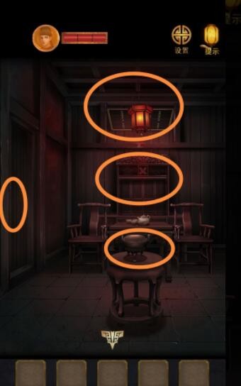 8、忘了还有个蜡烛,小鹿壁画旁边有个燃着的蜡烛,把捡的蜡烛拿过去引燃。回到客厅刚才拿铜人的中间柜子,把蜡烛放里面照亮,发现有个圆块,里面还贴着一张五行图。