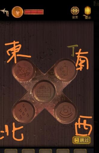 2、中间匾额上是咒语bushi线索。下面柜子上的丁对应匾额丁上的南,那么其他几个方位确定了,再对应五行属性,和图案再对应一下就打开柜子了。获得一个桐人。