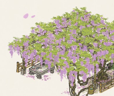 紫藤花系列活动开启!活动期间,参与各项活动收集《中庭步月图》《绿荫草堂图》《真赏斋图》《惠山茶会图》可对其进行修复,解锁紫藤花绽放形态。
