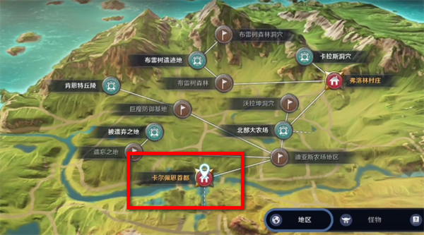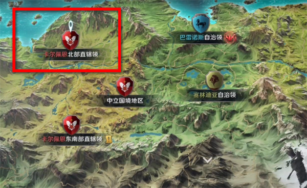 1、玩家进入游戏之后先打开大地图,找到卡尔佩恩北部直辖领,点击进入;