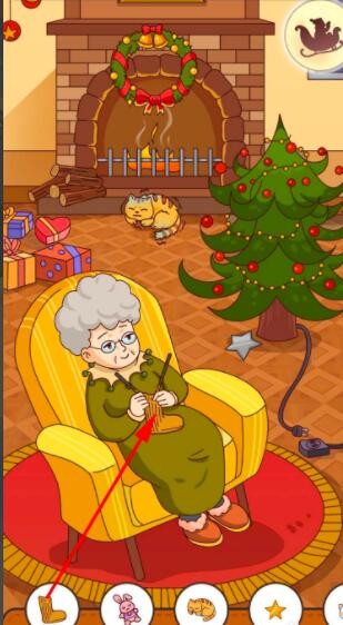 把老奶奶叫醒以后,她就会继续织袜子,点击袜子即可获得。