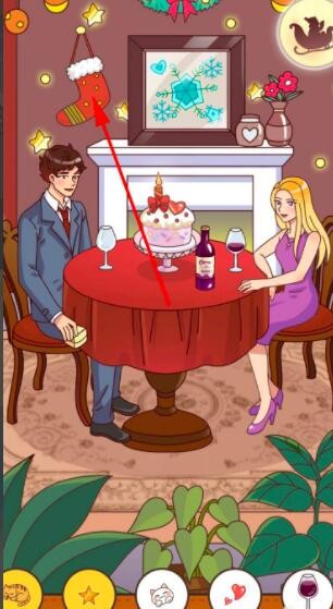 从第二扇窗户进入第二个房间,点击圣诞袜2次。