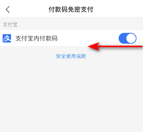6、之后将支付宝内付款码的滑动按钮向左滑动,滑动完成后便关闭了支付宝内付款码。